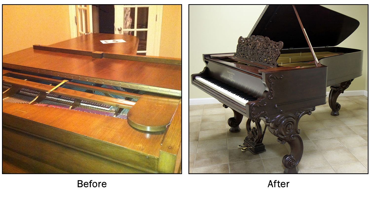 As you can see, each piano restoration we do is completely custom and tailored to meet the stylistic preferences and historical time period that each customer desires.