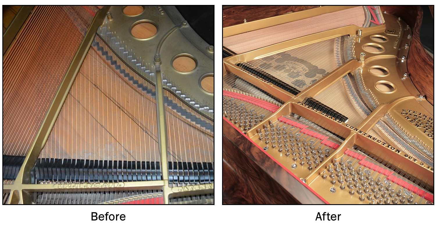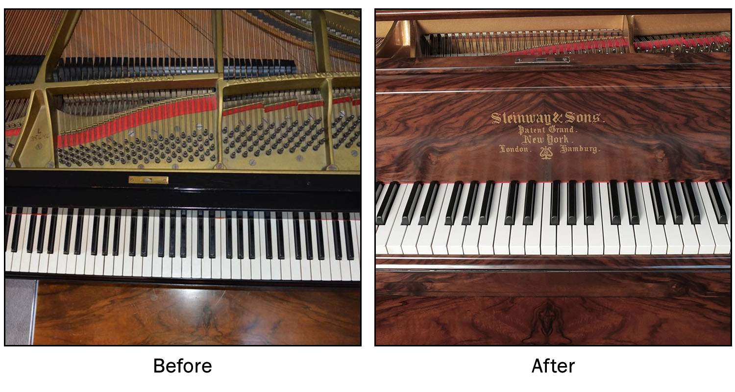 A piano restoration project can breathe new life into a beloved antique piano. Whether it is a family heirloom or a recent purchase, we work with our customers to achieve their end goals for their pianos. The restoration process for any piano begins with a comprehensive assessment of the piano's condition and understanding of a customer's wishes for the finished aesthetic.