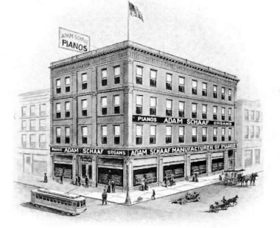Adam Schaaf, the company’s namesake founder, began producing pianos in 1873 [1] out of his Chicago factory. The original Schaaf factory was a beautiful, six-story building that produced equally beautiful instruments. [2]