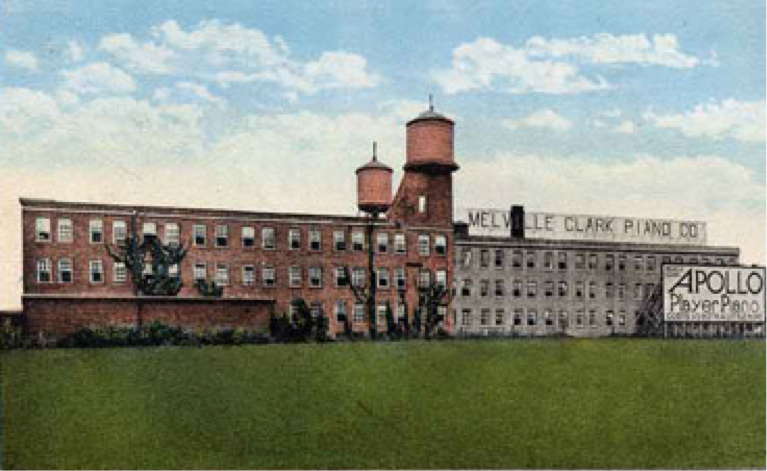 The well-known Apollo line of pianos was the product of a piano manufacturer by the name of the Melville Clark Piano Company. The company began producing Apollo player pianos in 1901 out of its Grand Haven, MI factory, and later out of DeKalb, IL. [1]