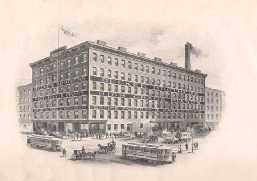 In 1892, Jacob Becker founded Becker Brothers, with its factory located in New York City. In addition to manufacturing their own brand of pianos, Becker Brothers also owned the Bennington, Mellotone, and Playernola lines. In 1928, Jacob’s only son, Rudolph, took the reigns from his father and ran the company. Rudolph Becker ran Becker Brothers until it closed its doors around the start of World War II. [1]