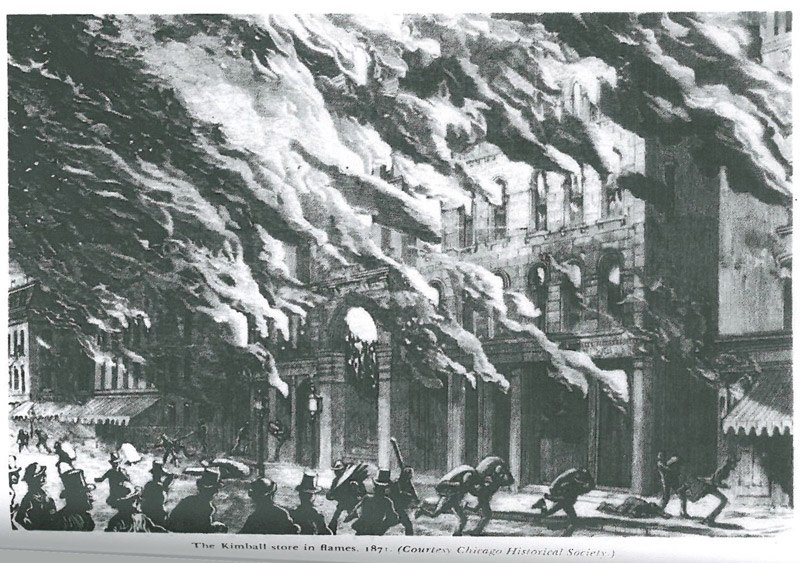 Sadly, the Great Chicago Fire of 1871 caused great damage to the Crosby Opera House where Kimball’s store resided. After a recent $80,000+ renovation, the fire brought it to the ground. In the haste of the fire, Kimball and his acquaintances managed to wheel only seven grand pianos out of the burning building before the rest of the building’s contents were burned to ashes. [2]