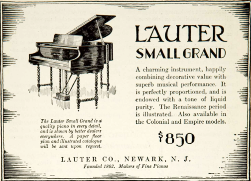 The Lauter Piano Company was originally established in 1862 as music store on Broad Street, Newark, New Jersey. S.D. Lauter founded his company with the ambitious goal of selling reliable pianos at reasonable prices to customers all over the world.