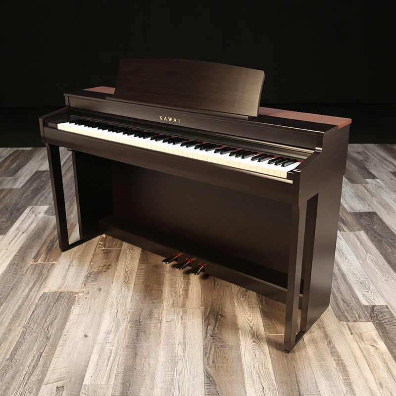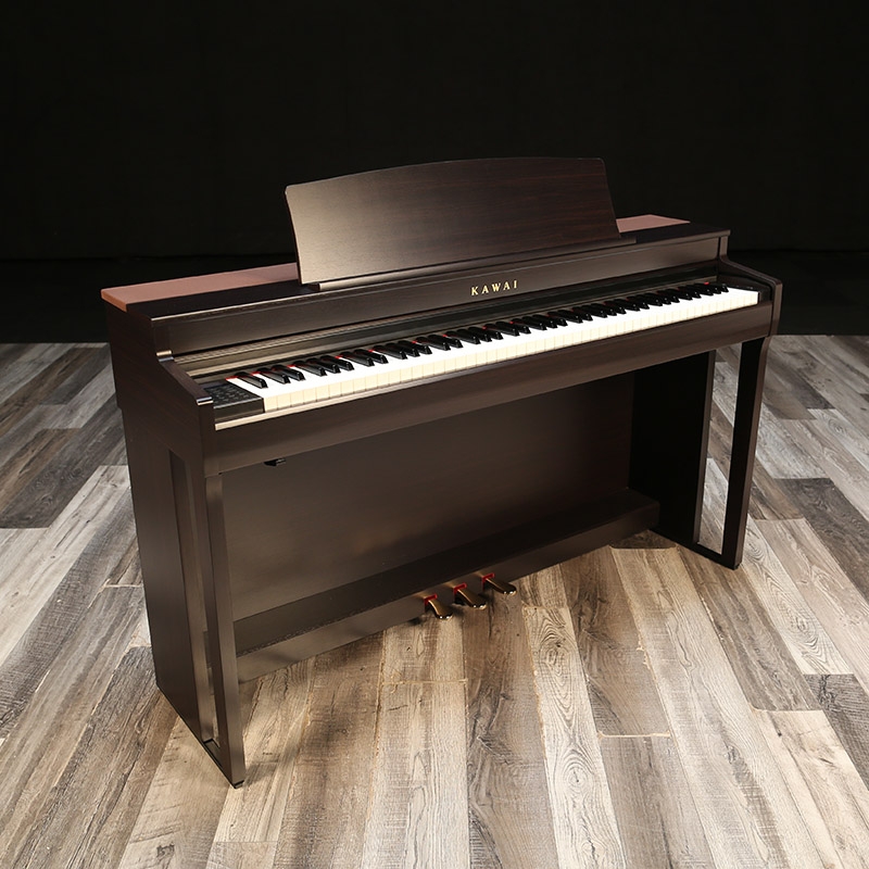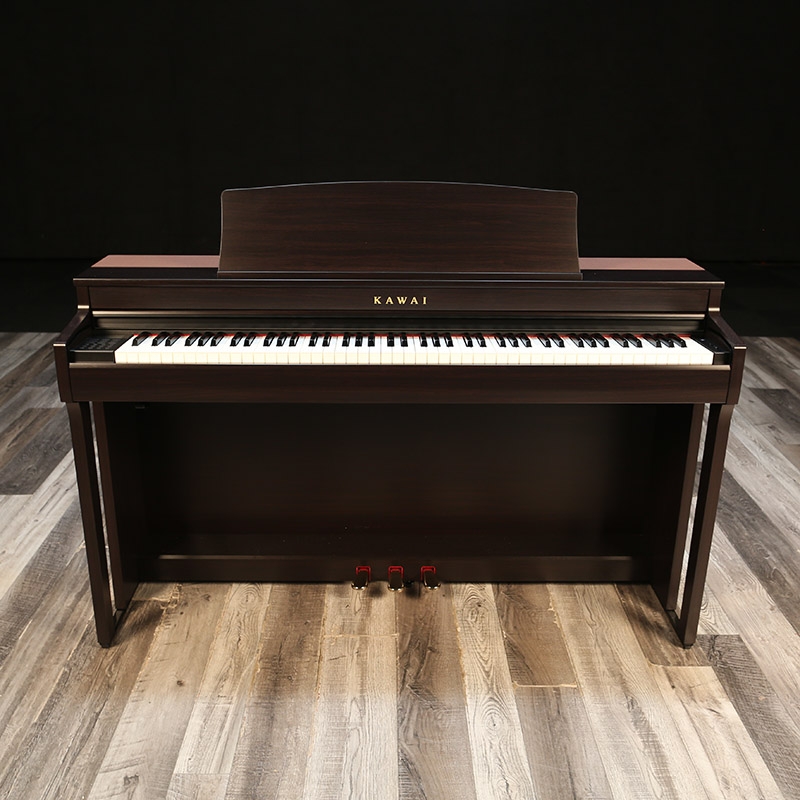 The Kawai CN 301 digital piano in a warm Premium Rosewood finish delivers an authentic, acoustic-like experience in a sleek, modern design, perfect for homes and studios. With dimensions of 57” (W) x 17” (D) x 34” (H), the CN 301 is compact yet powerful, featuring Kawai’s Responsive Hammer III (RHIII) action with triple-sensor technology to provide a smooth, realistic touch that mirrors a grand piano. Its rich sound comes from Shigeru Kawai SK-EX and EX concert grand samples, enhanced by Harmonic Imaging technology, delivering an expressive, full-bodied tone across the dynamic range. Bluetooth MIDI and audio connectivity, a premium speaker system, and intuitive controls make it versatile for both practice and performance. The CN 301 is an elegant, sophisticated choice for musicians seeking quality and style in a digital piano. View videos of this digital piano being played here - Videos