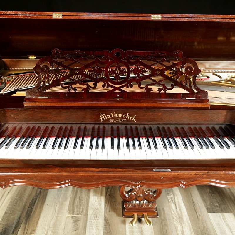 Own a piece of history and gorgeous hand-carved artwork that is not only stunning to look at but also beautiful to play. One of the greatest innovators in piano design and construction was Frederick Mathushek. Mathushek’s vision was to create the finest pianos possible, and with his unique approach and unconventional designs, he eventually succeeded in building some of the finest pianos in American history. This piano was rebuilt in 2007 and is ready to enjoy in your home.