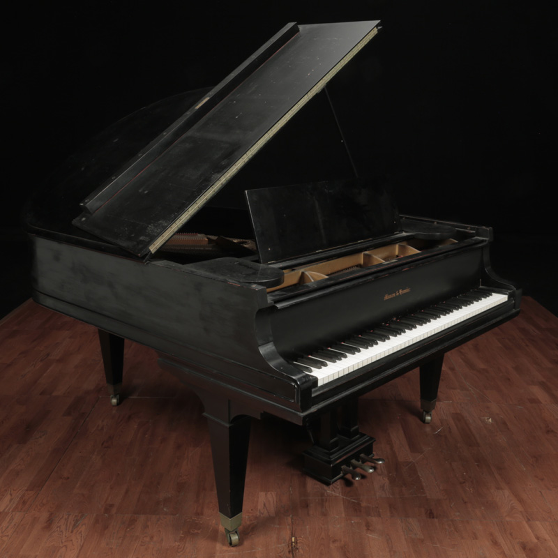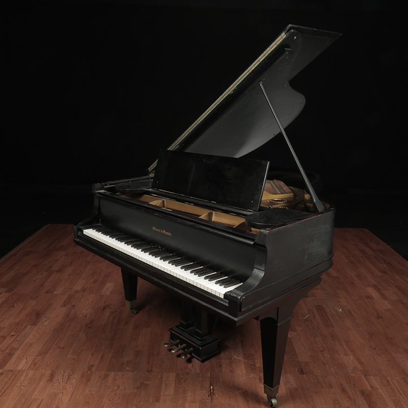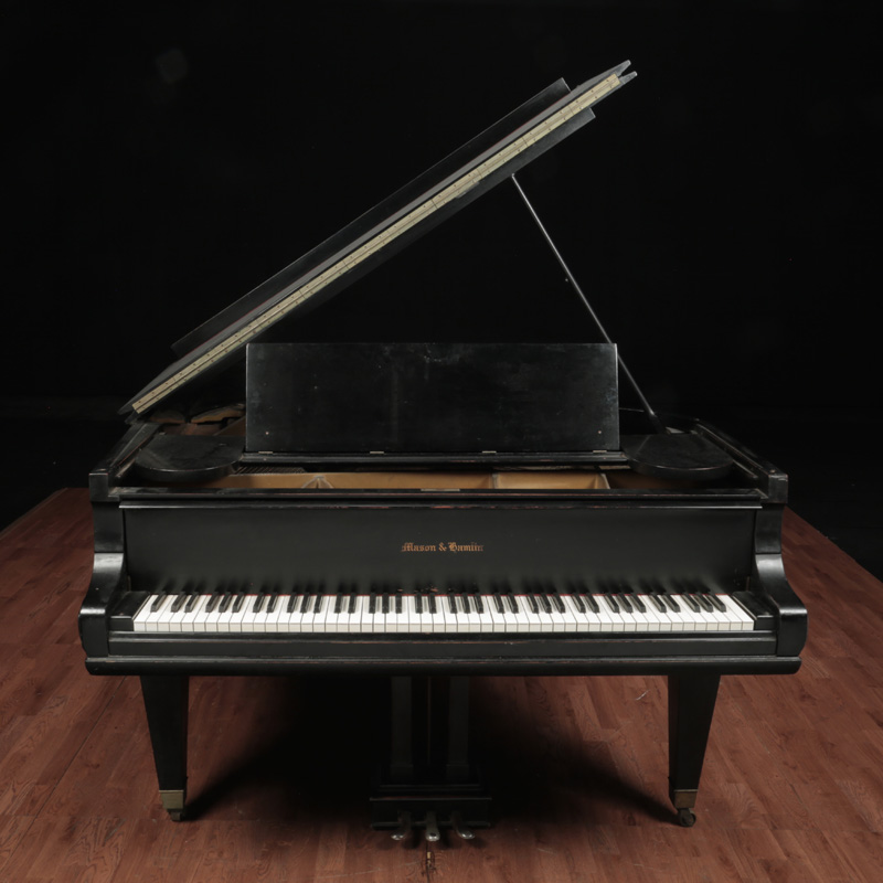 This 1922 Mason and Hamlin grand has a classic traditional style case and will be fully restored and refinished in a satin ebony finish. New Renner hammers, shanks, flanges and wippens were recently installed. Includes a matching artist bench.