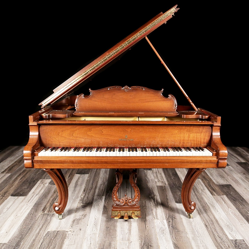 This 1929 Steinway Model B piano has a beautiful walnut veneer and a Louis XV styled case. Also known as the "Music Room Grand," the Steinway Model B is a semi-concert grand piano, measuring about 6'11" in length. This size offers a powerful and rich tone that is suitable both for larger living spaces and small concert venues. The 1920's are a part of Steinway's "Golden Age" where the craftsmanship and attention to detail were at an all time high.