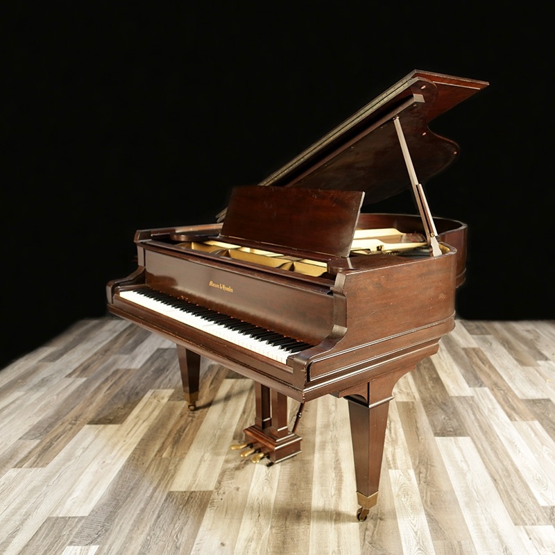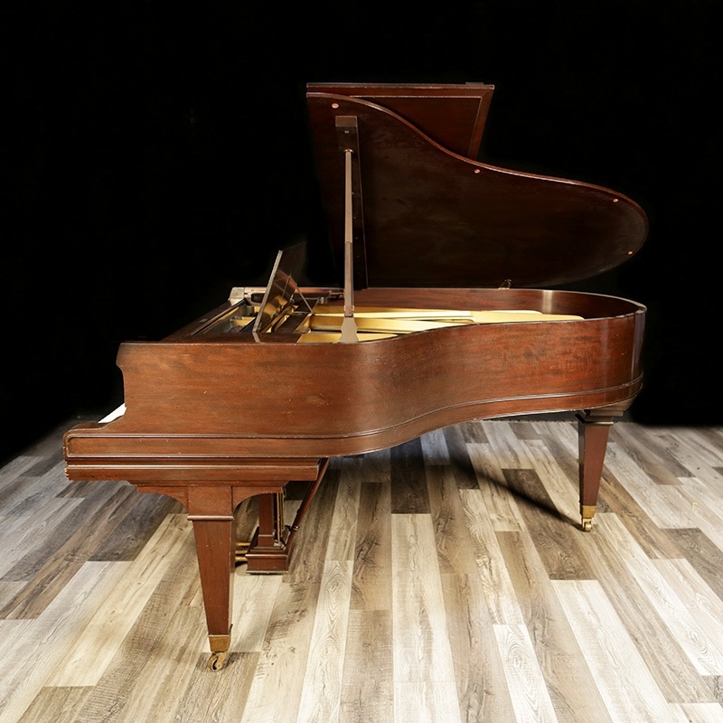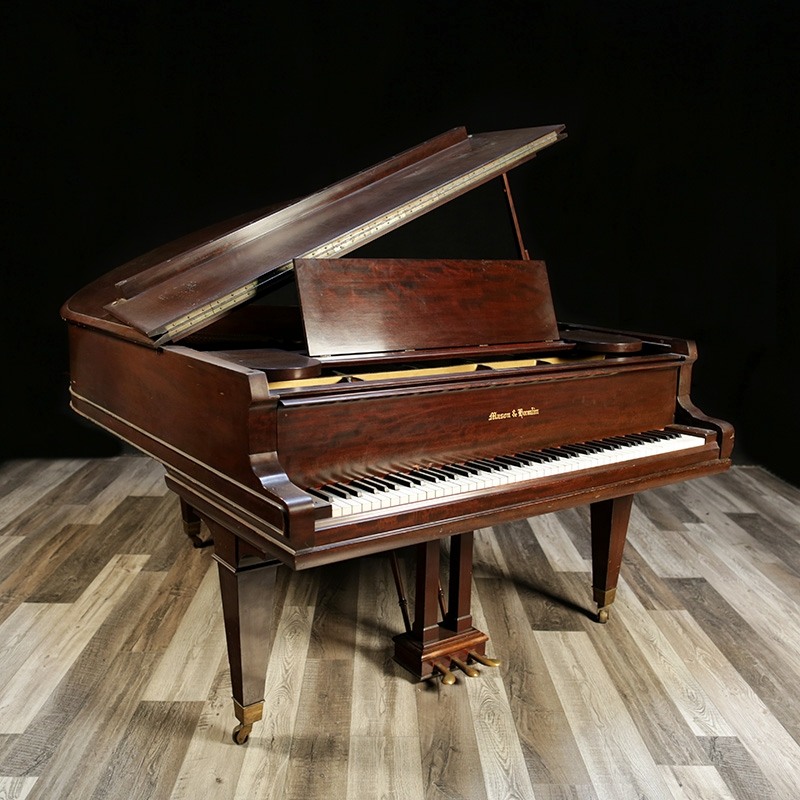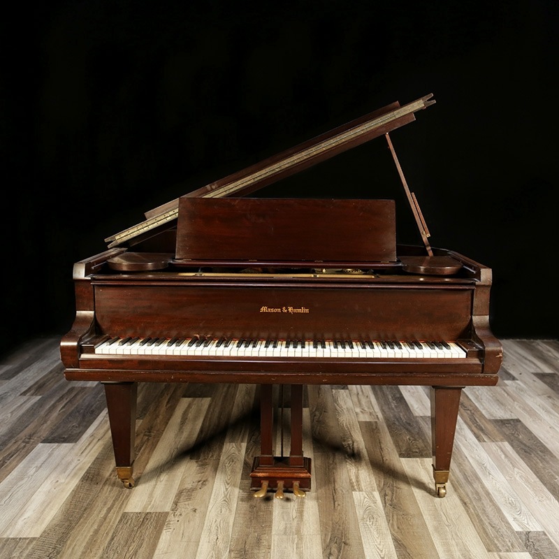 Mason and Hamlin pianos are well known for their thunderous low end and bell-like highs. This traditional style Mason Hamlin grand will be refinished in a satin wood tone stain or satin ebony, have a new soundboard, and a new action. It will come with the original matching wood top bench.