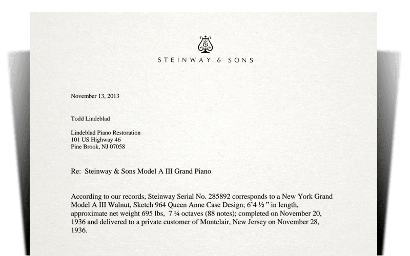 This splendid Queen Anne style Model A piano features burled walnut veneer. As an intermediate sized piano it maintains the impressive look and sound expected from a Steinway, without requiring a very large room. More than three quarters of a century ago this piano was first sold to a private family in Montclair, New Jersey. Today it can become a part of your family’s history.