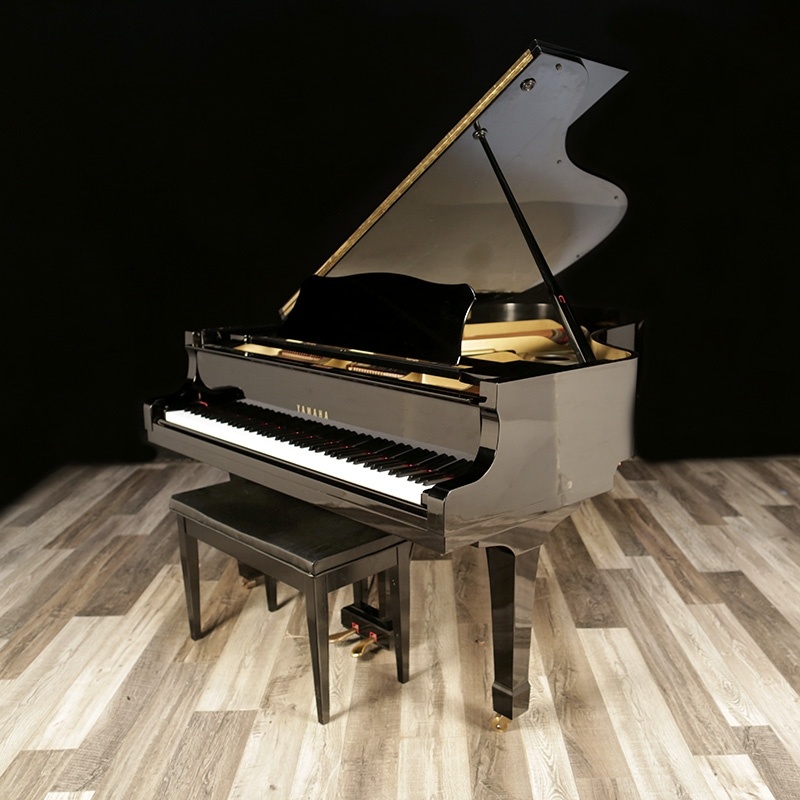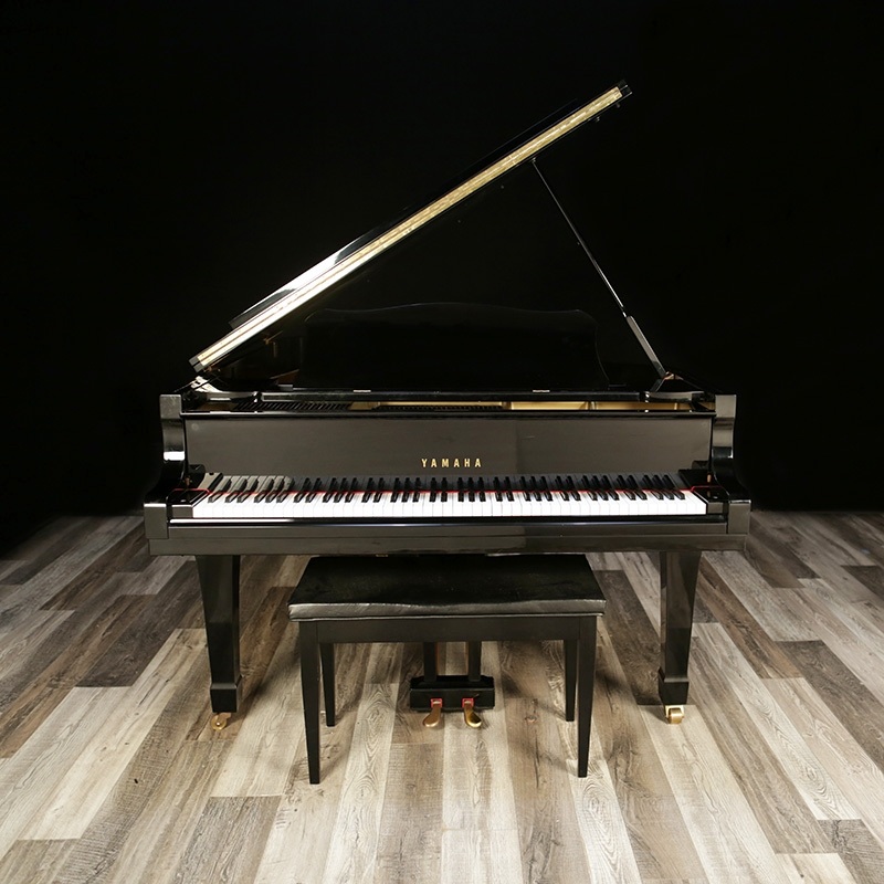 This 1979 Yamaha G5 is a full size grand piano and has been well maintained. The soundboard is in excellent condition and we can make custom adjustments to the tone. Yamaha pianos are known for their high quality, reliability, and excellent sound featuring solid spruce soundboards. Includes matching bench shown.