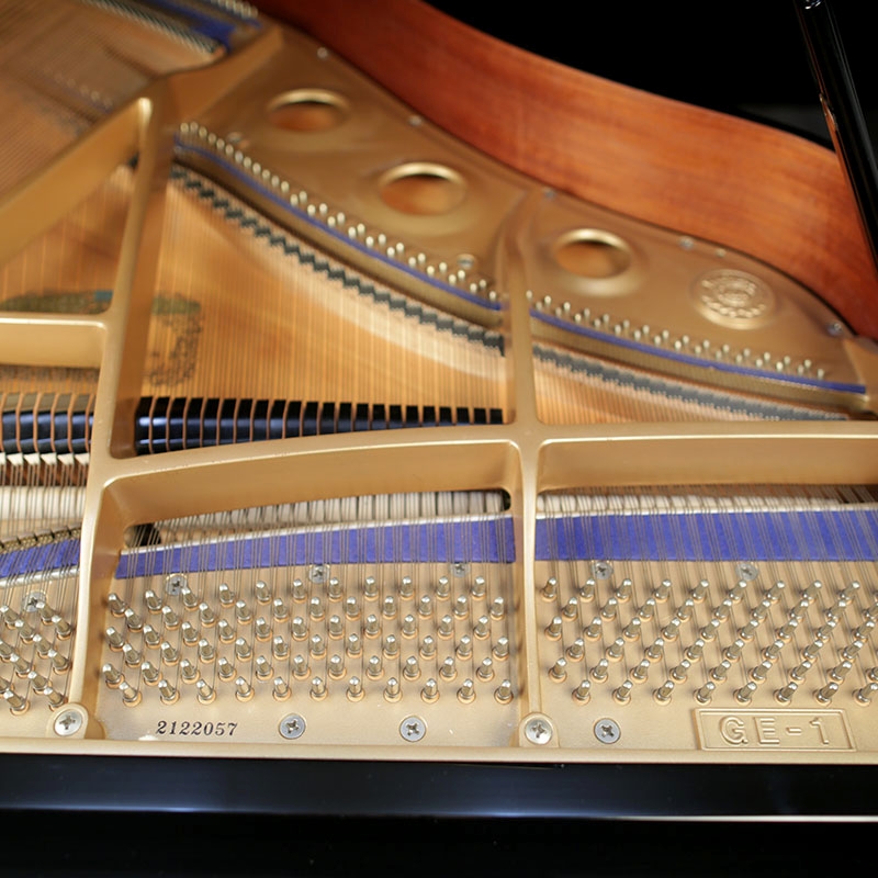 The Kawai GE-1 is a grand piano model produced by Kawai, a renowned Japanese piano manufacturer known for its high-quality instruments. The Kawai GE-1 grand piano typically measures around 5'1" (approximately 155 cm) in length. This makes it a baby grand piano, suitable for smaller spaces while still offering the rich sound and touch of a grand piano. Kawai uses solid spruce soundboards in their pianos, which contribute to the instrument's rich and resonant tone.