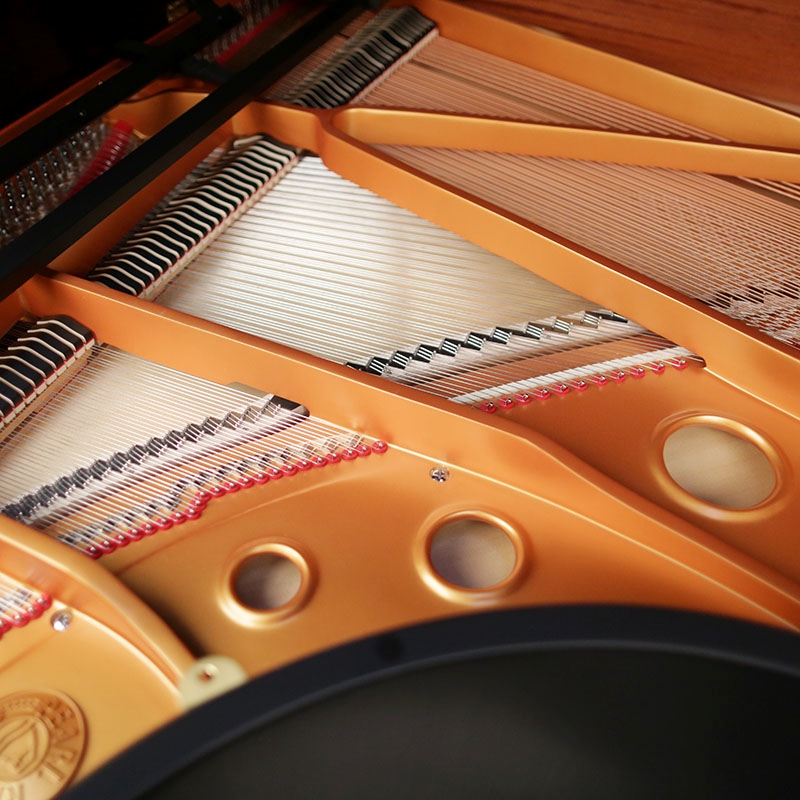 We recommend that this soundboard be replaced with a hand-crafted spruce soundboard.