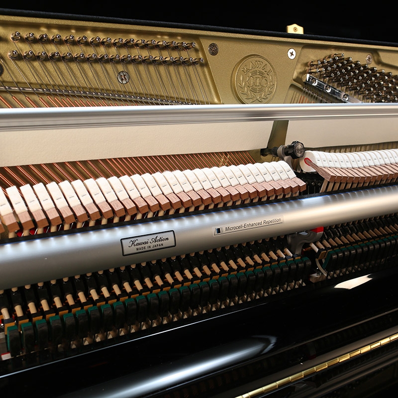 The Kawai K-300 in a high gloss ebony offers an exquisite combination of elegant design and superior performance, making it an excellent choice for discerning pianists and institutions. Standing at 48 inches (122 cm) tall, the K-300 features Kawai’s advanced Millennium III Upright Action with ABS-Carbon parts, providing unmatched responsiveness and durability for consistent, precision playing. Its solid spruce soundboard and mahogany core hammers produce a full, rich tone with exceptional clarity. The K-300 blends professional-level sound and touch with timeless beauty. View videos of this piano being played by a concert pianist here - Videos