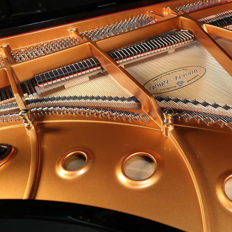We recommend that this soundboard be replaced with a hand-crafted spruce soundboard.