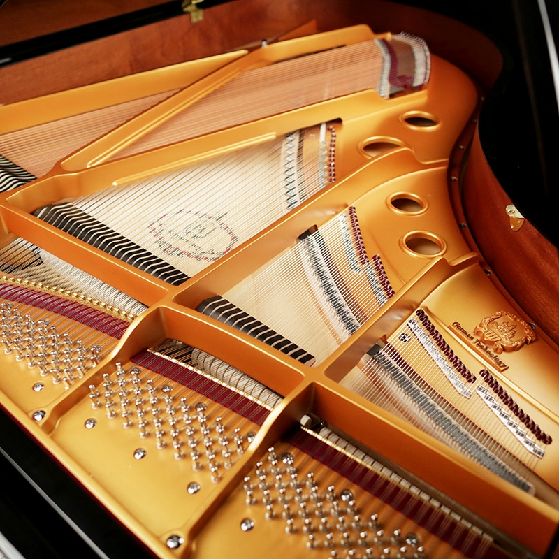 We recommend that this soundboard be replaced with a hand-crafted spruce soundboard.